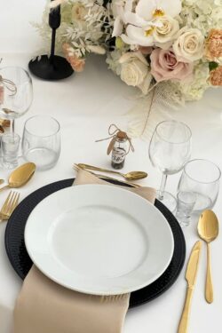To praktyczna i stylowa serweta dekoracyjna na wynajem, pasująca do wielu realizacji eventowych.
